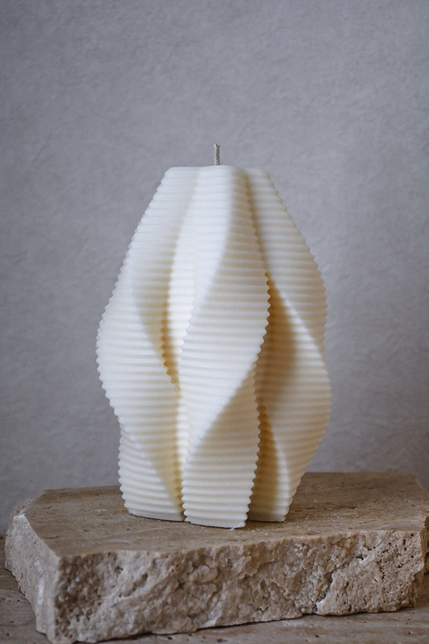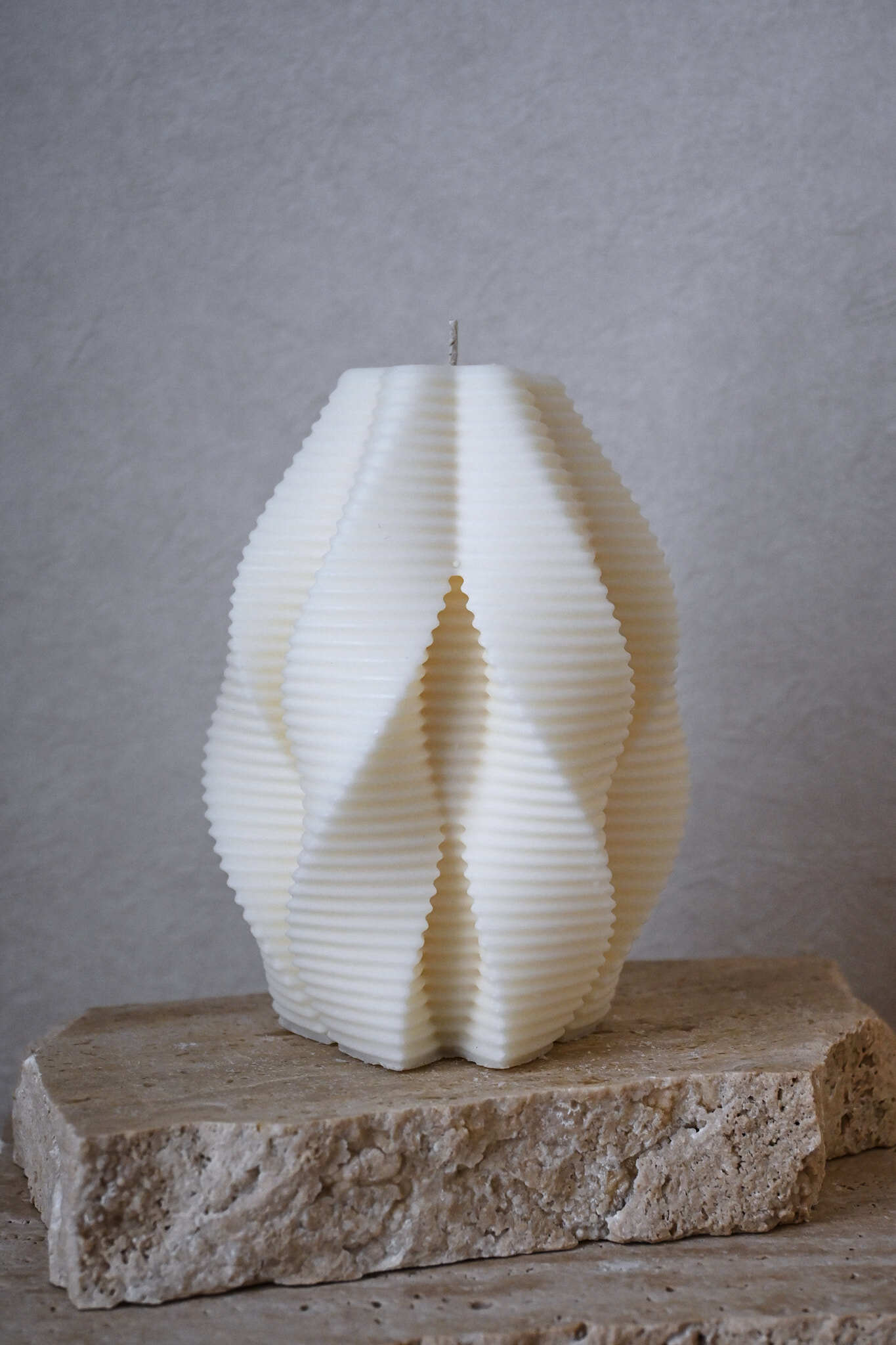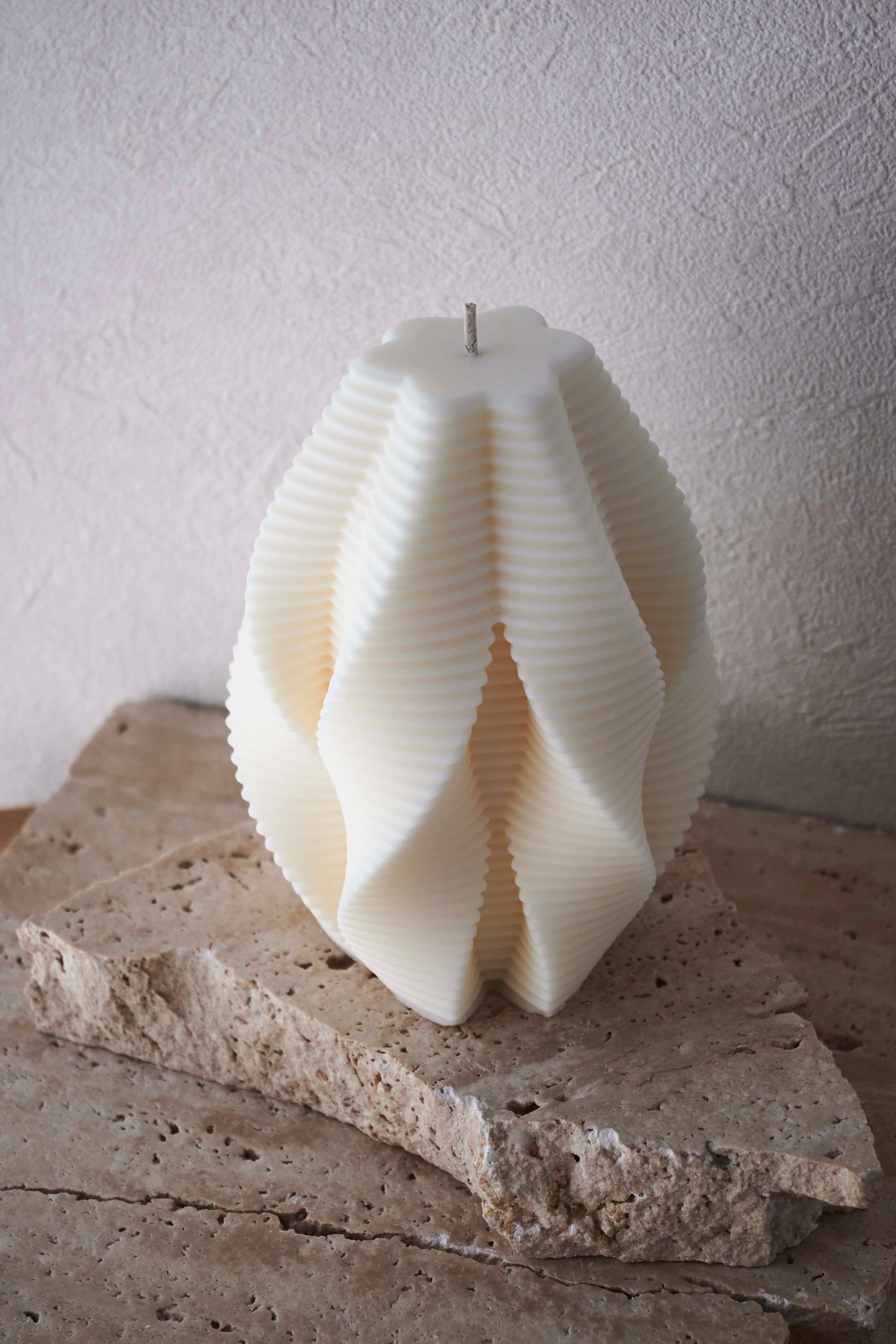 綺麗な細かいラインでツイストされた、フラワーキャンドル。