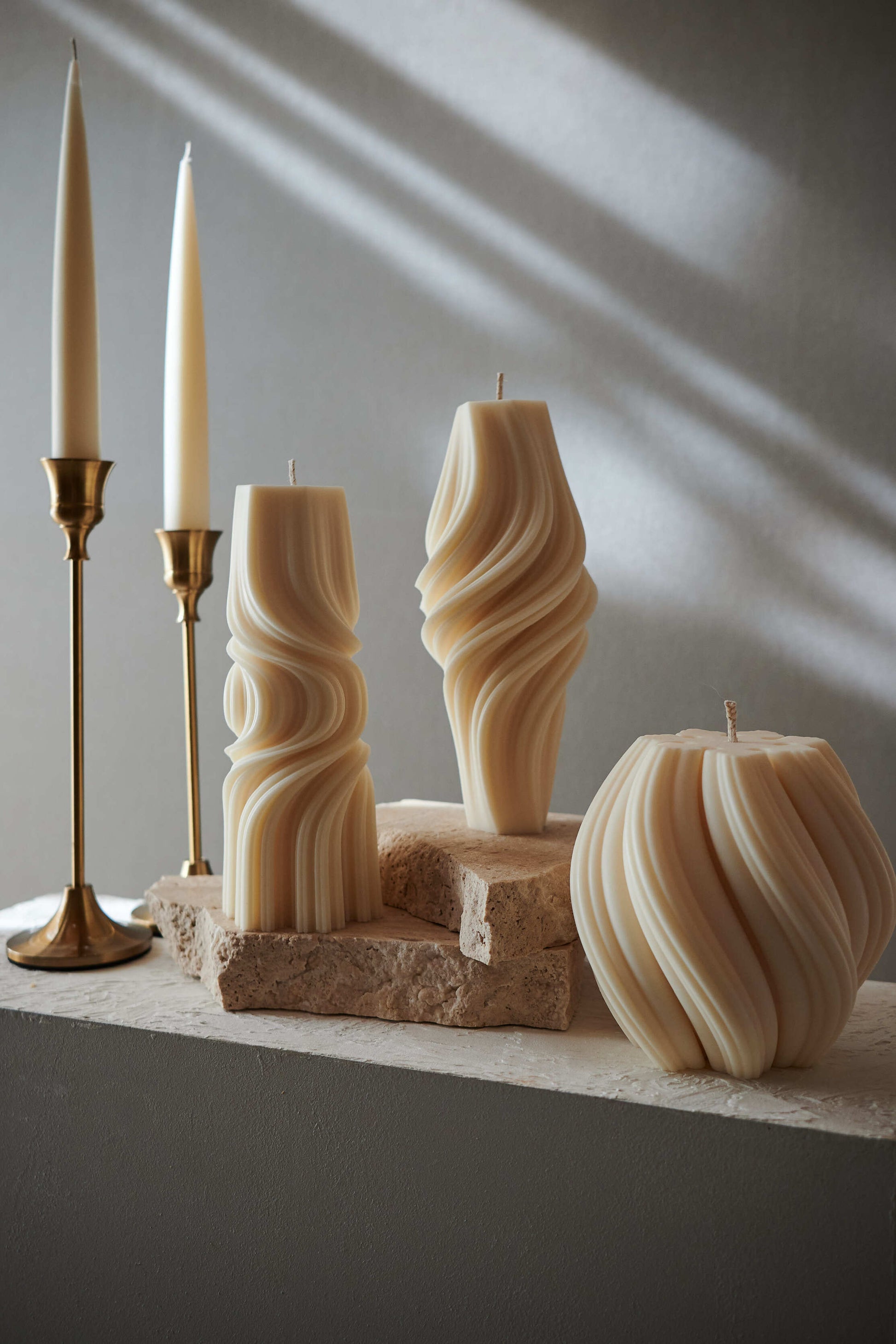 時が止まった様に流れ出している曲線がとても美しいインテリアキャンドル