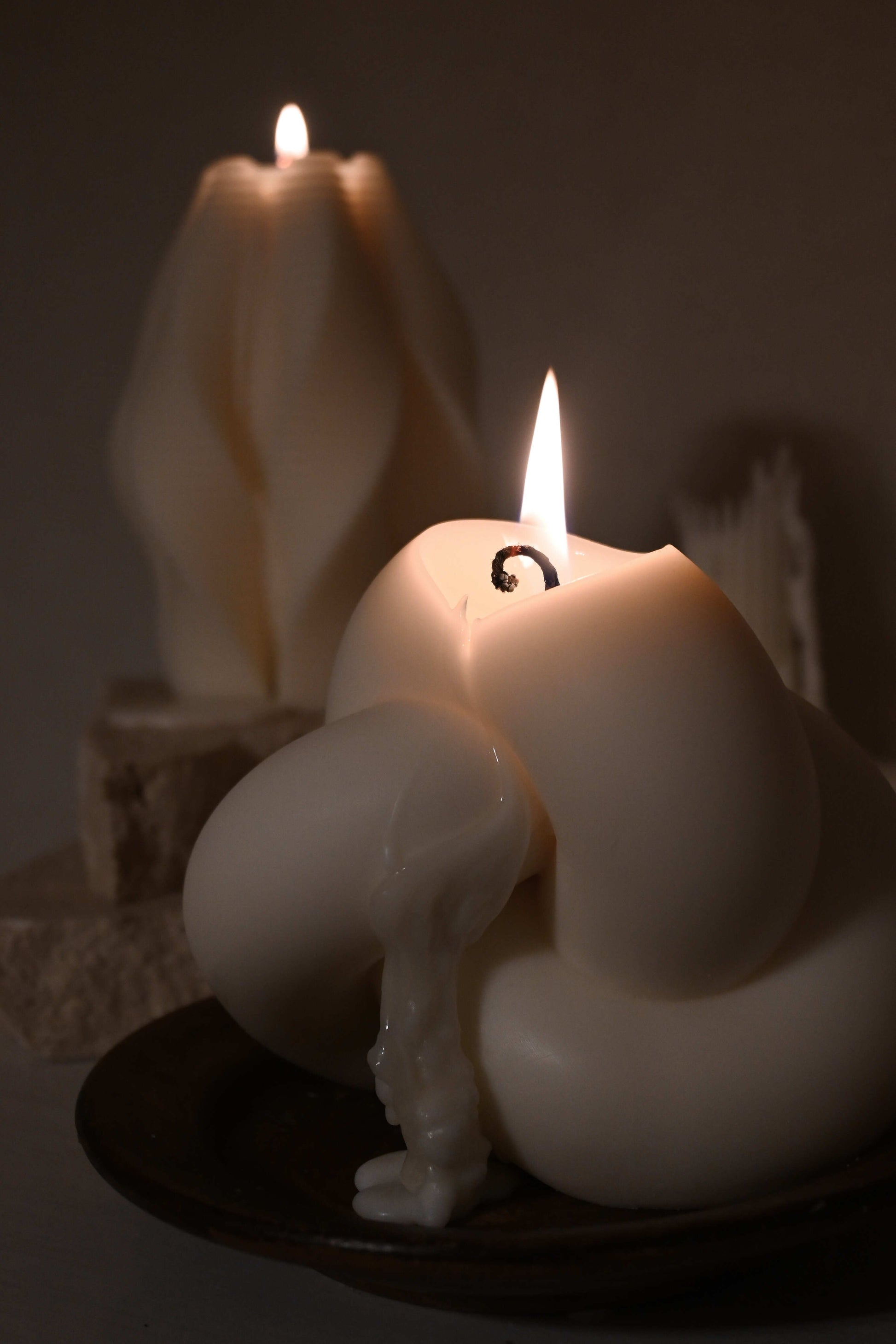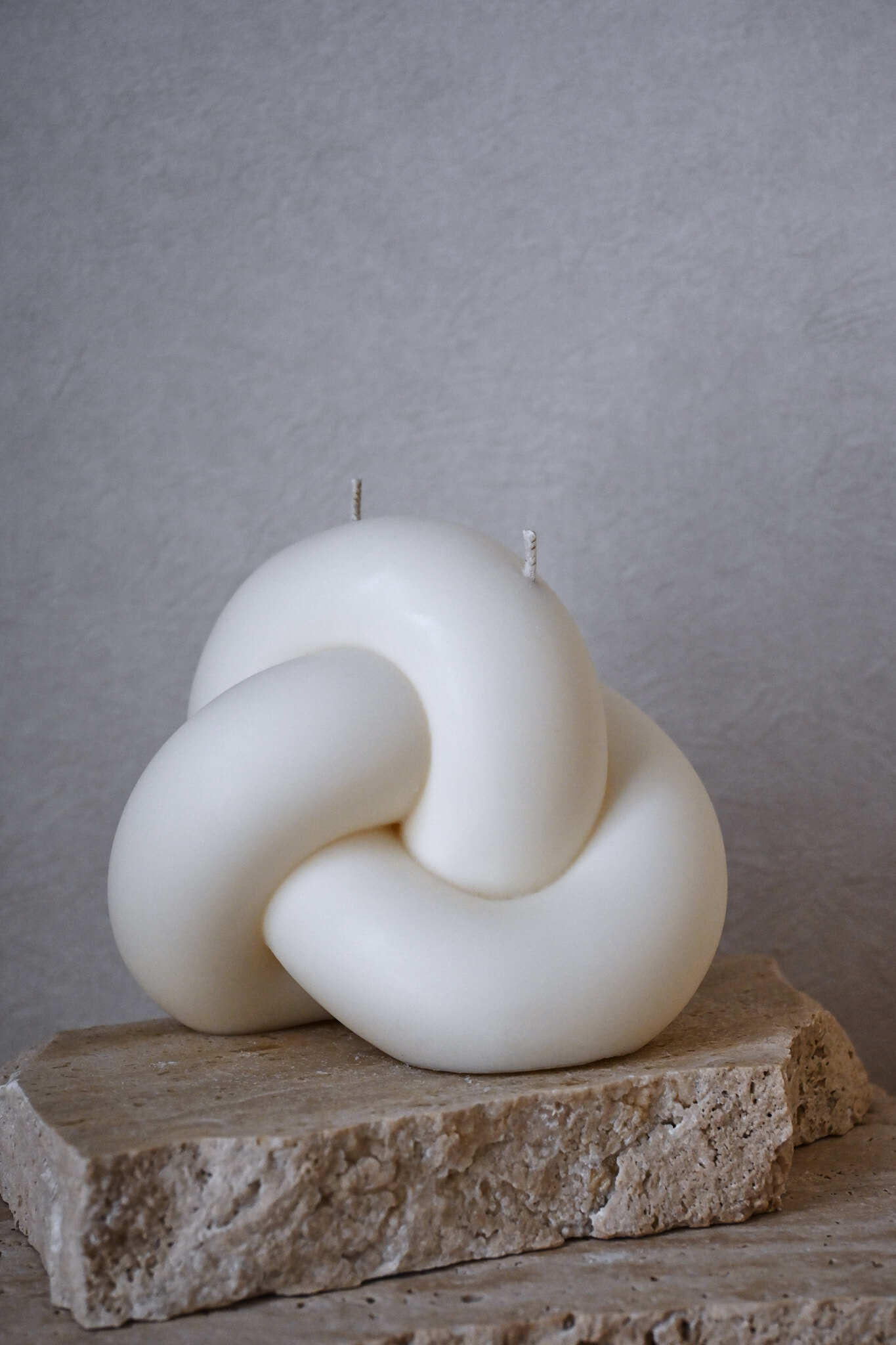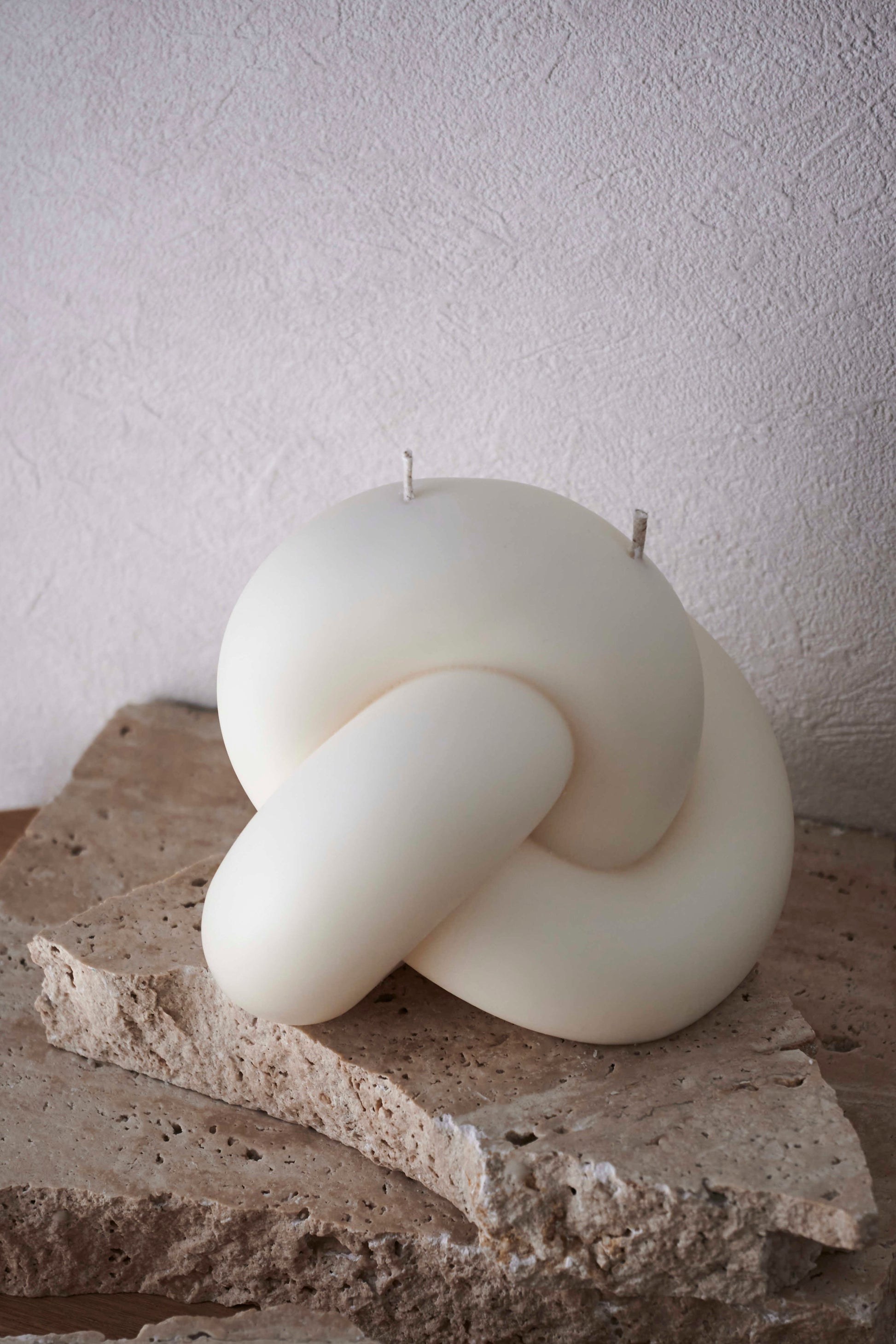 ノットのようなコロンと可愛いキャンドルは、単体で置くだけでもインパクト大。