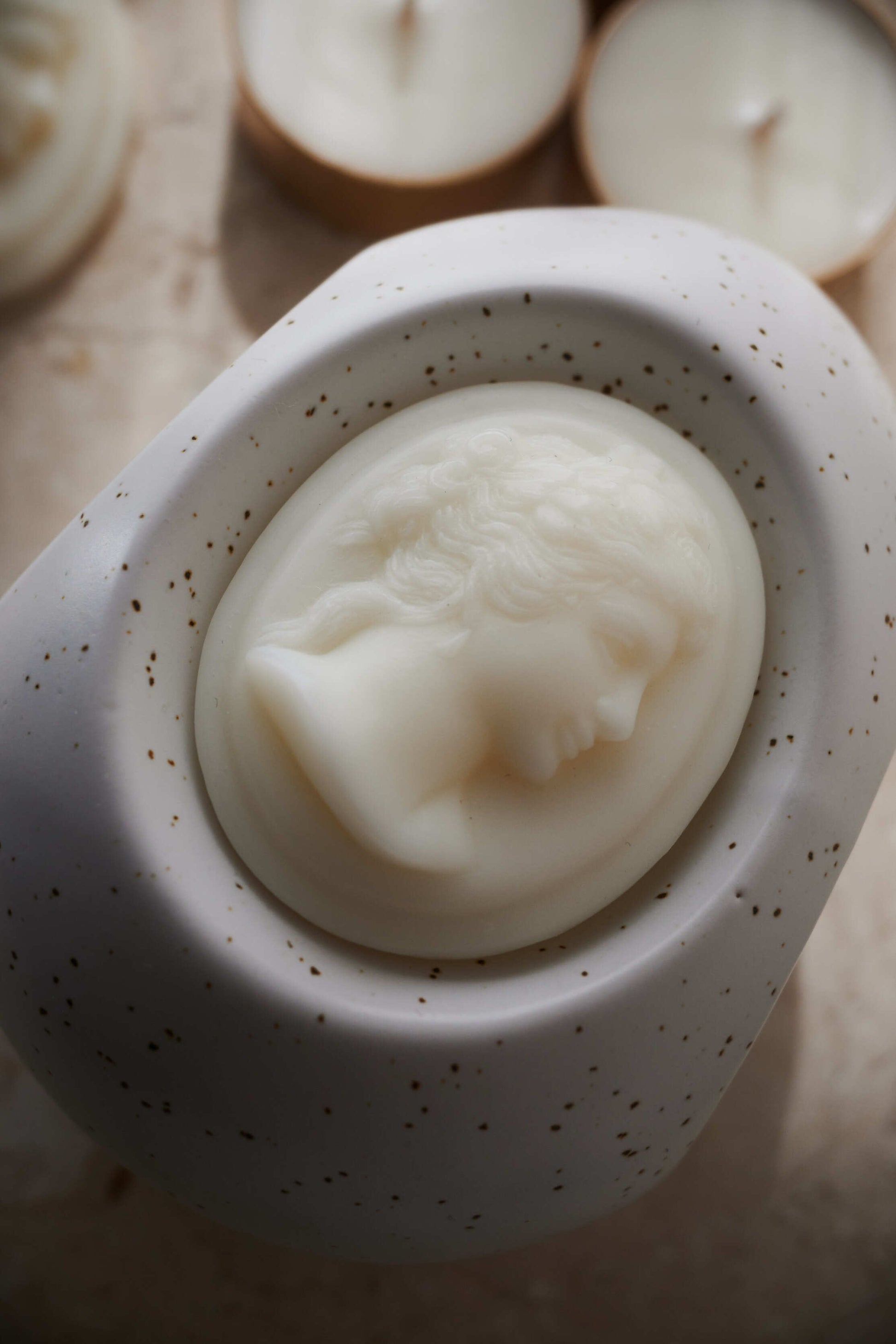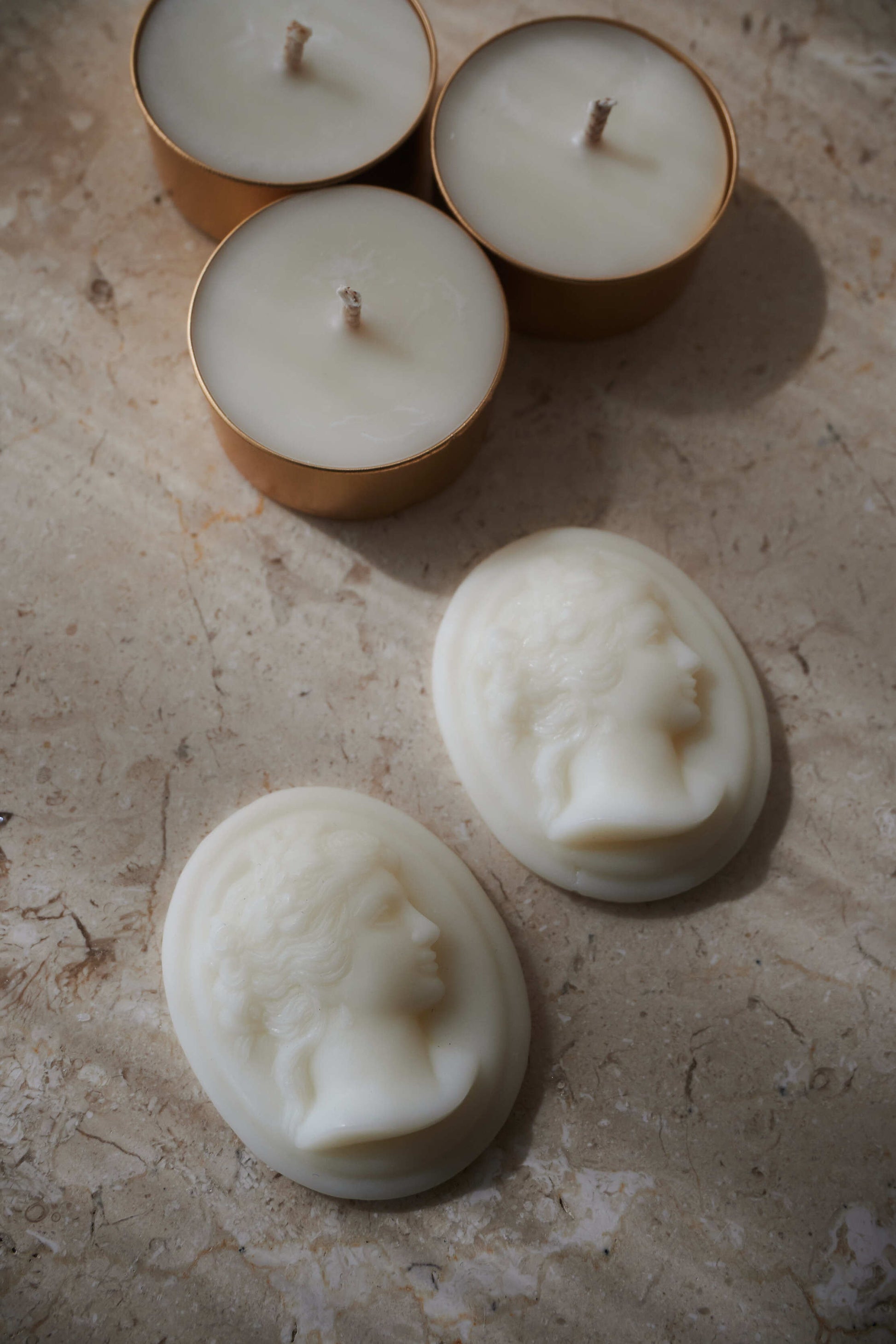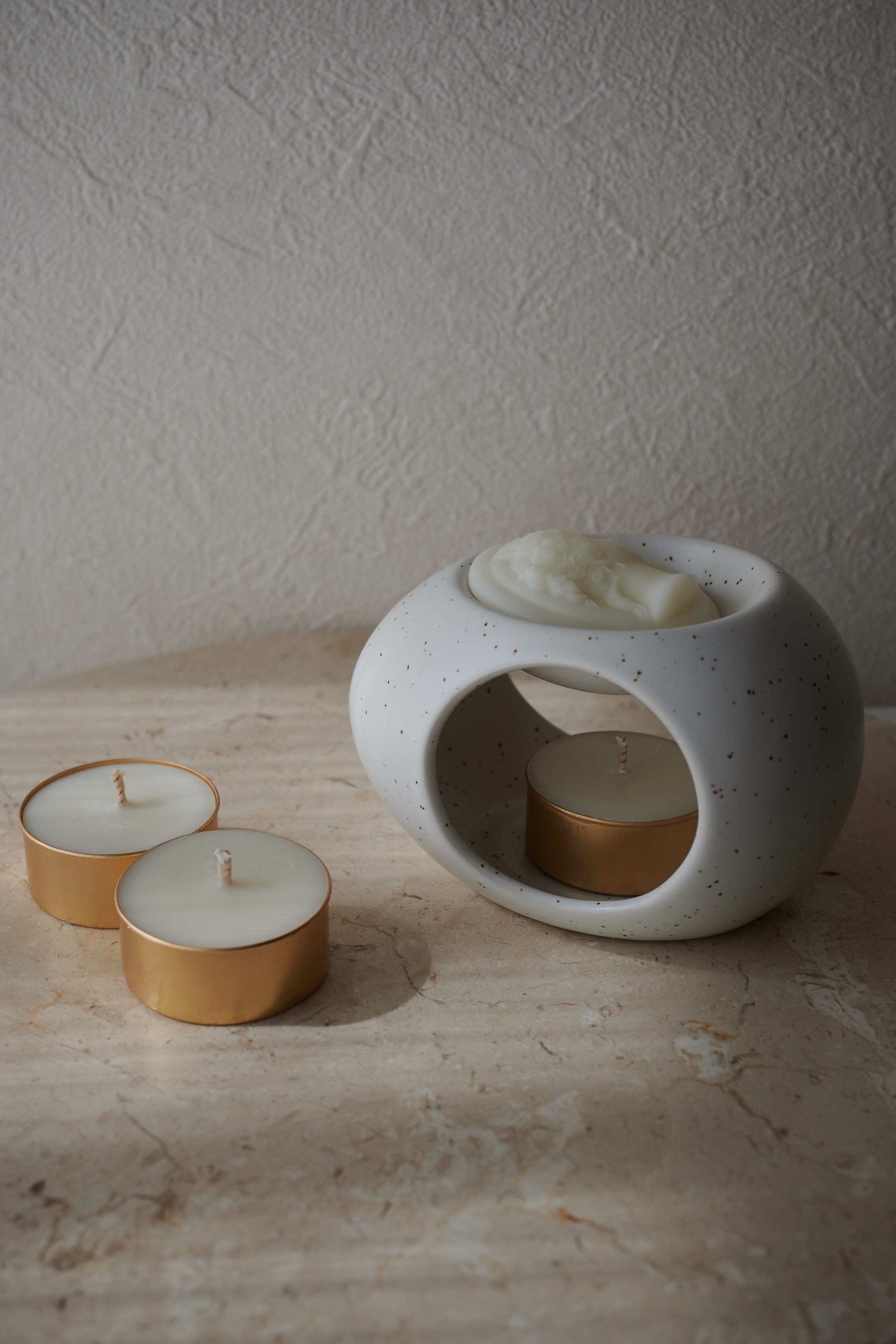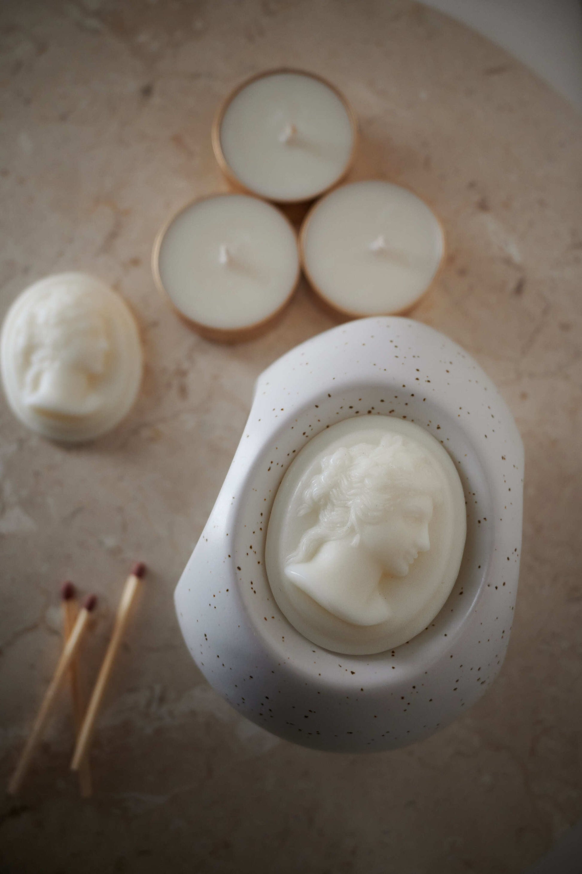 SETに含まれるもの : アロマカメオ2個、ティーライトキャンドル2個、陶器ディフューザー1個